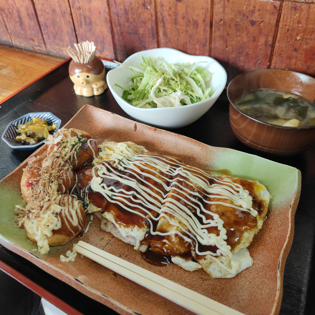 ちょうどお昼時になったので、ランチは森ノ宮駅近くの「ジャンボたこ焼きたっくん」へ。