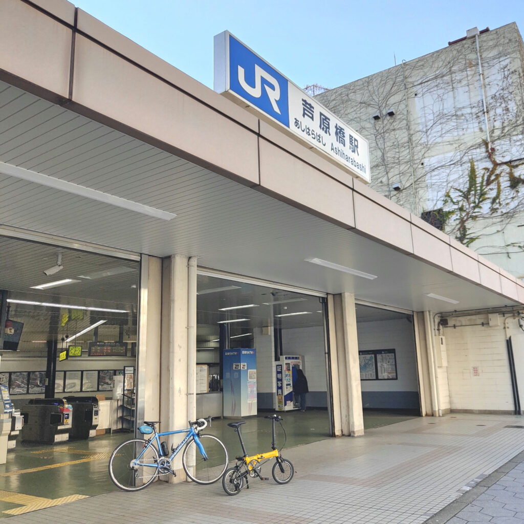 ちなみに駅で写真を撮るには、改札まで自転車を持って上がる必要があります。